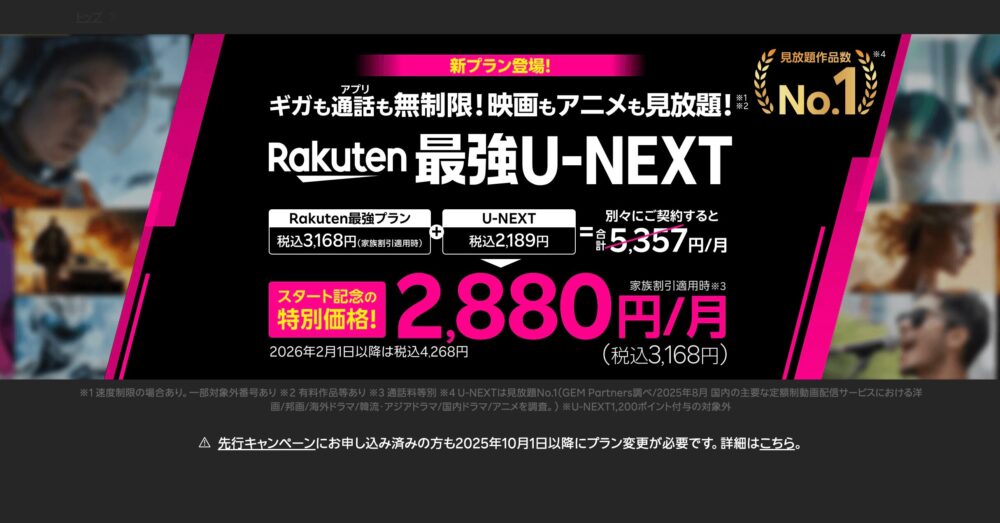 ARCHIVES2025年10月 【Rakuten最強U-NEXT】最大4か月3,278円!動画もギガも無制限のキャンペーン徹底解説|楽天モバイル契約でさらにおトク2025.10.03 オプションサービス ゆゆゆ ゆゆゆの楽天モバイル紹介ブログ