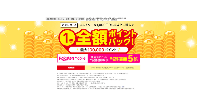 キャンペーンに参加するには楽天モバイルの契約が必須ですが