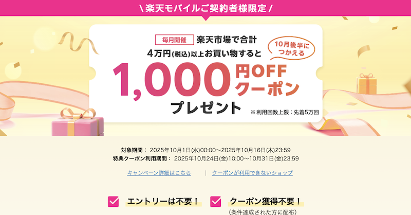 楽天モバイル契約者ならさらにお得で、スマホ代も節約できる絶好の機会です!
