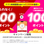 - 楽天モバイル契約者なら+100ポイントで倍の恩恵。