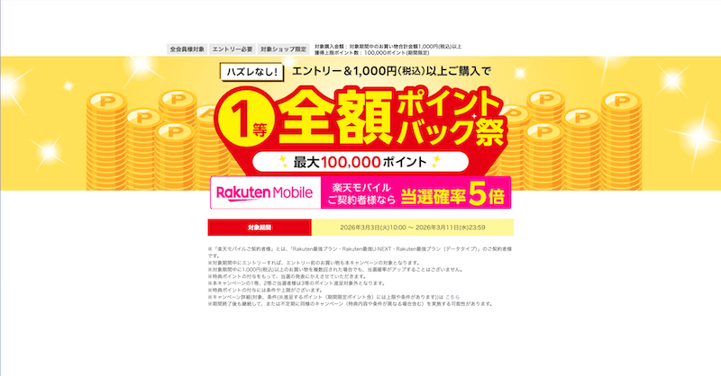 キャンペーンに参加するには楽天モバイルの契約が必須ですが