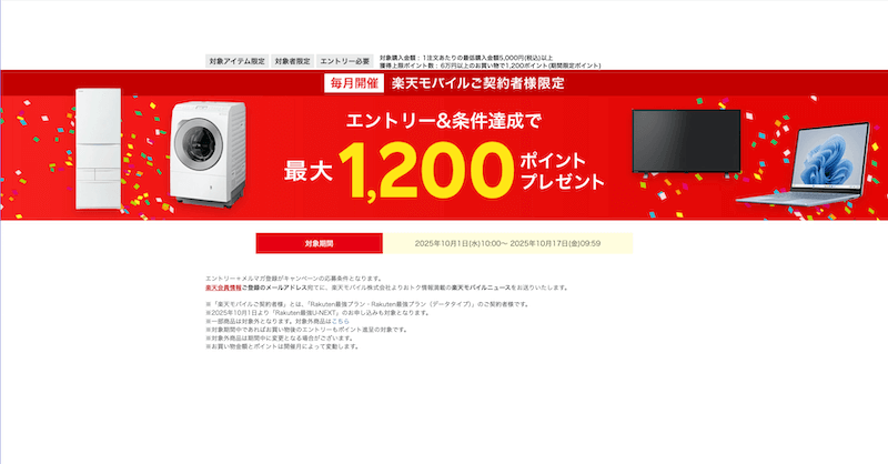 キャンペーンに参加するには楽天モバイルの契約が必須ですが